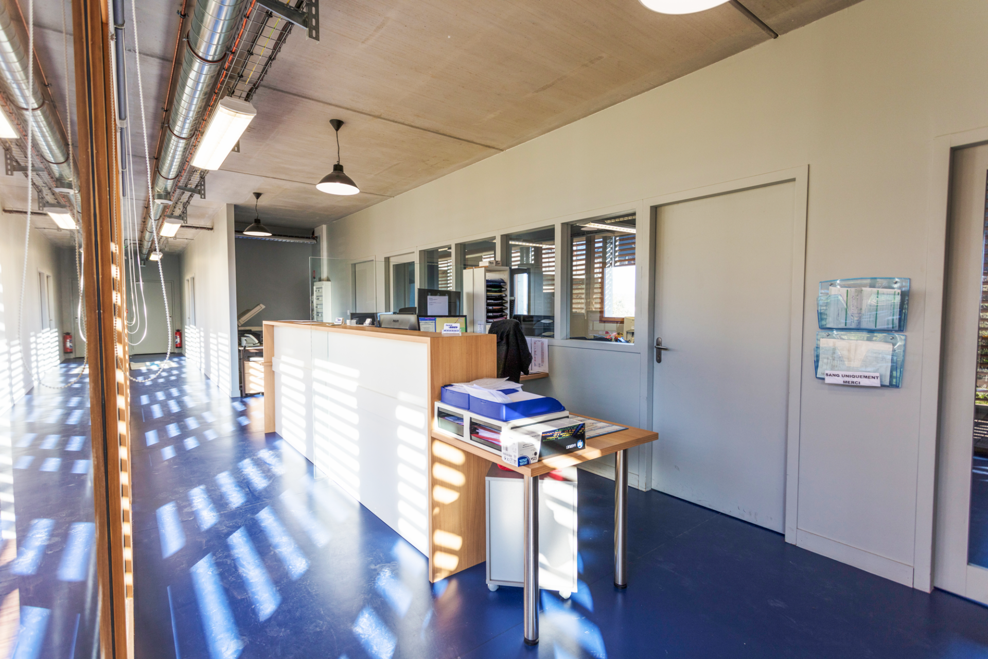 Les accès piétons, situés en partie haute, relient le bâtiment à la voirie, tandis que la partie basse offre un accès direct au parking voiture voiture, en rez-de-chaussée. Chaque niveau est directement accessible de plain-pied depuis l’extérieur.