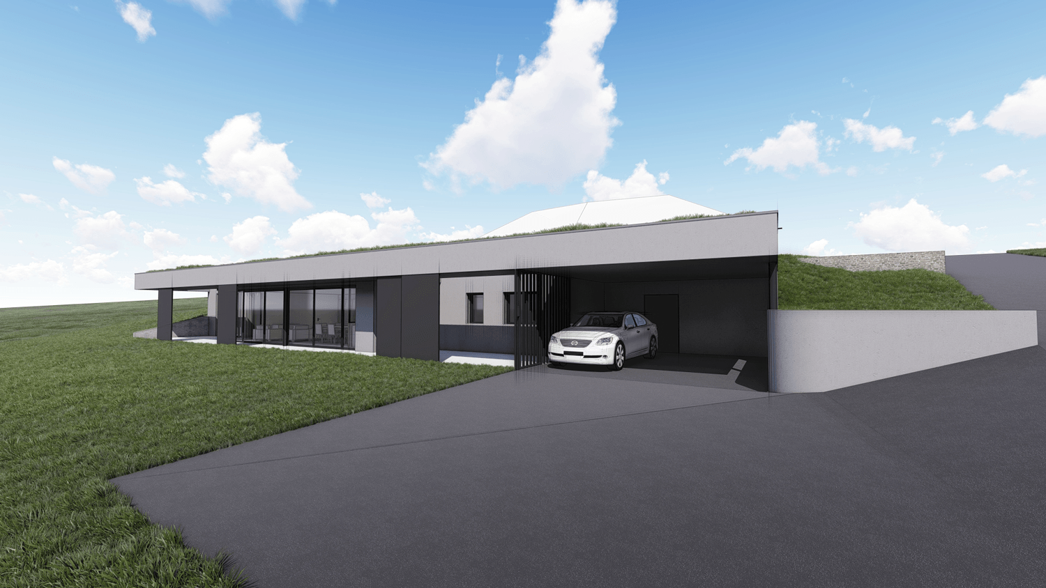 L’abri voiture sera perpendiculaire au volume principal, donnant ainsi un accès parallèle à l’entrée du terrain.