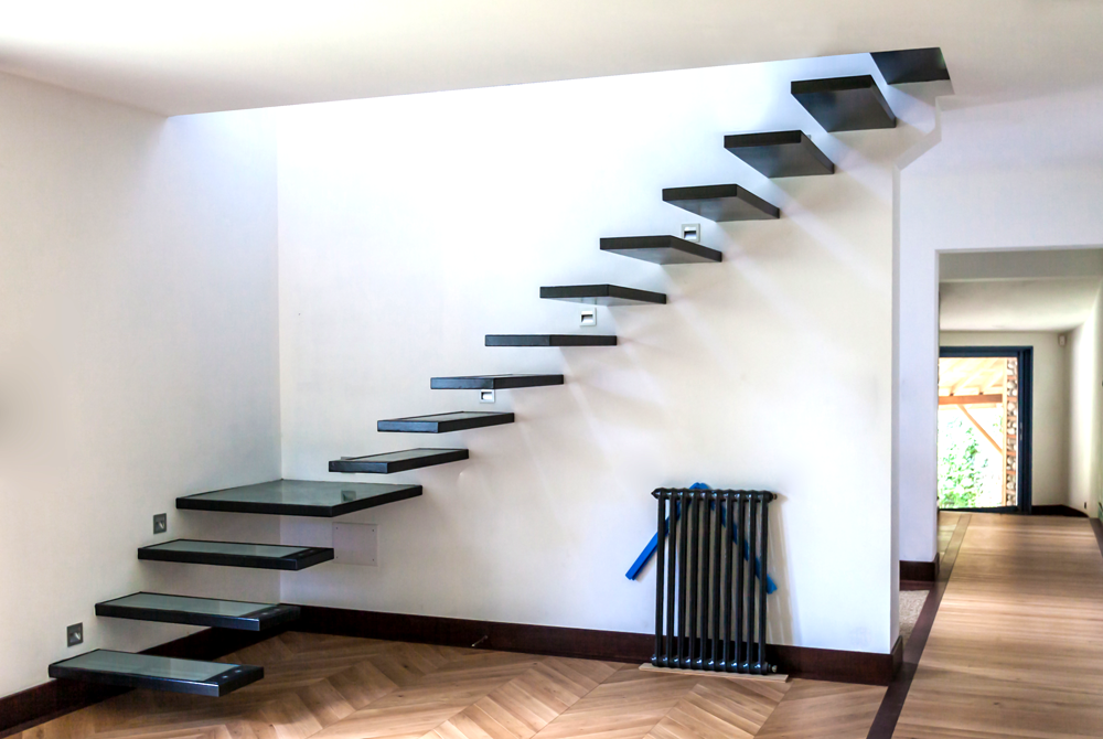 Elle se décompose en deux ailes. L’aile liée à l’espace « jour » est traversante et implantée à proximité de la voie, permettant une intimité du terrain. Cette implantation permet de gagner en apports de lumière. L’aile de « nuit » est sur pilotis et récupère l’ensoleillement du Sud. Le garage, dans la continuité de l’espace jour, protège la terrasse des vues et crée le glissement vers l’entrée. Le volume des espaces de réception s’ouvre largement sur le terrain et sur un patio apportant la lumière de l’Ouest. Les chambres donnent directement sur les espaces extérieurs et ouvrent visuellement sur le cœur du terrain. La piscine, en contrebas du terrain, trouve une terrasse abritée sous les chambres. Cette maison est conçue de façon à pouvoir profiter de l’extérieur tout au long de l’année.