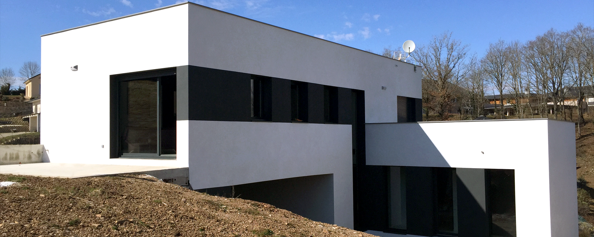 Cette maison individuelle s’adapte à la topographie du terrain et s’inscrit dans la pente en prenant en compte les cadrages paysagers, notamment celui du lac de Pont-de-Salars.