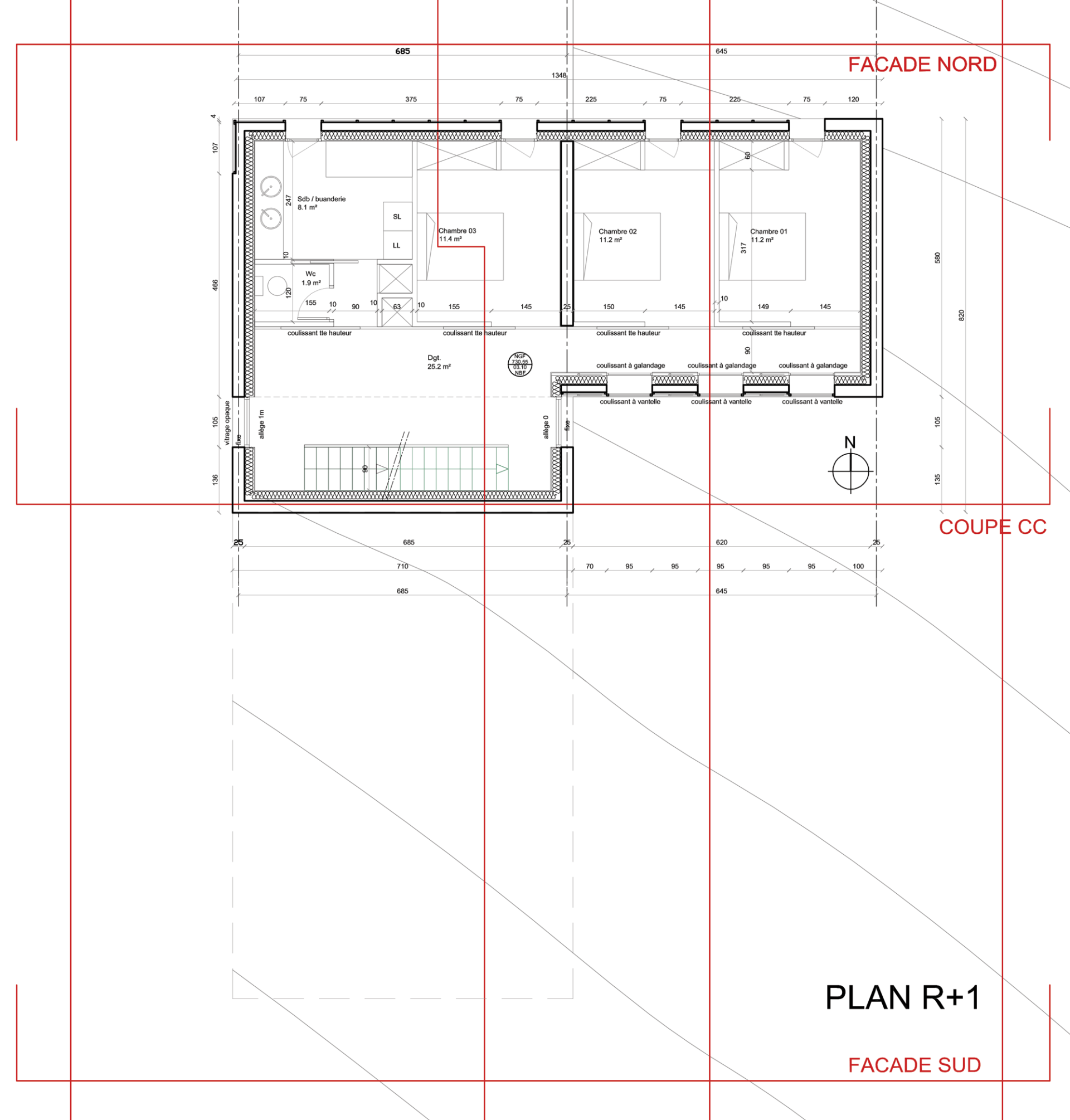 Les chambres en R+1 sont étudiées sur un principe bioclimatique de confort d’hiver et d’été.