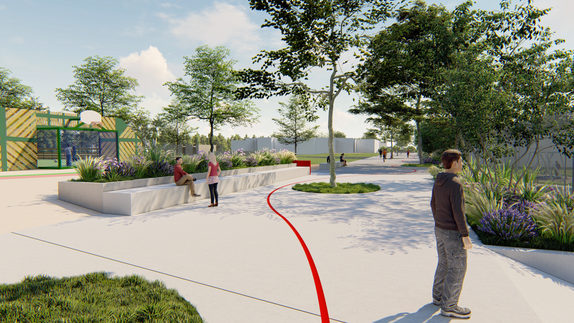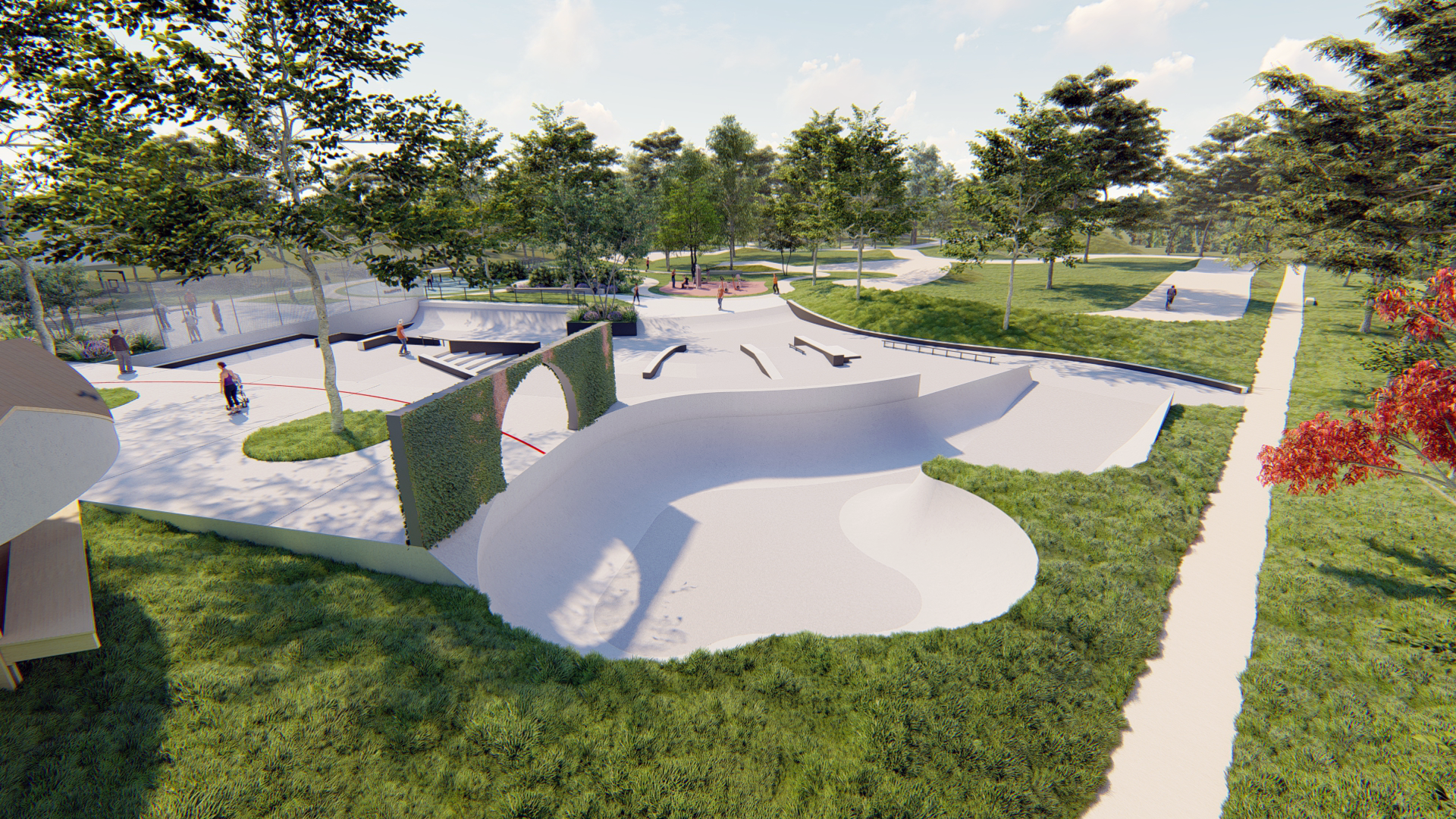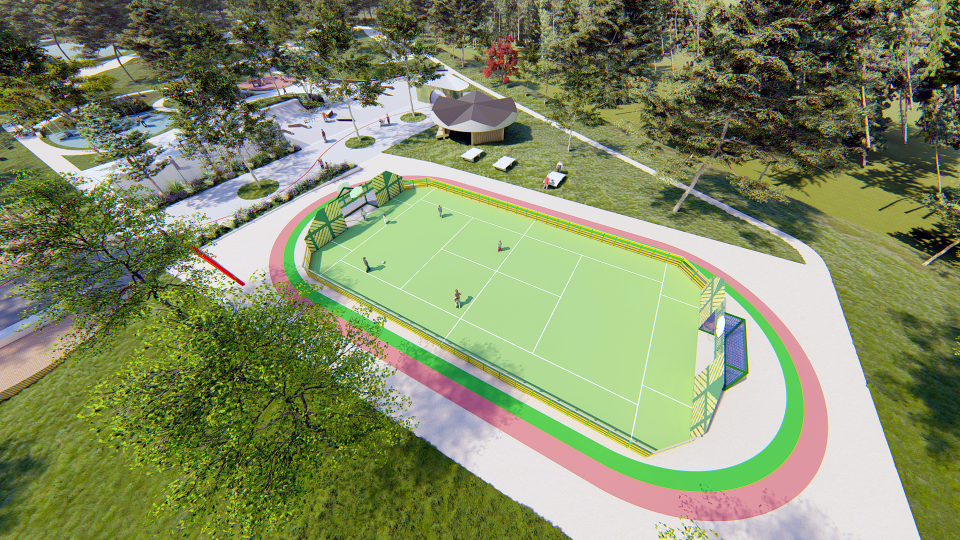 Le site sera intégré dans un parcours de santé. Sur place, un espace fitness sera aménagé. On pourra également profiter d’un terrain de football, de basket, d’un skatepark et de jeux pour enfants, ou encore déambuler autour du lac à l’ombre des arbres, dans un ilôt de fraîcheur où le rapport à la nature et la biodiversité seront encouragés. Cette multitude d’activités fera de ce lieu un espace intergénérationnel.