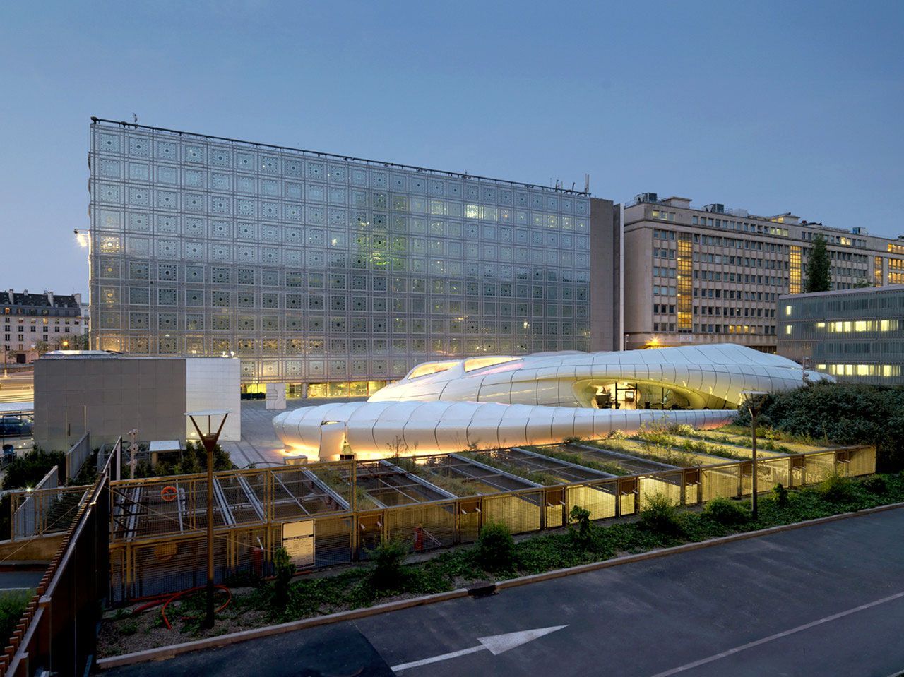 Ce musée d'Art mobile créé par l'architecte Zaha Hadid en 2007, a fait le tour des capitales de luxe. Il a été créé pour abriter une exposition de la marque Chanel. Après Hong-Kong, Los Angeles, Moscou, Londres, New-York et Tokyo, le bâtiment vient prendre place à Paris, sur le parvis de l'Institut du Monde Arabe.